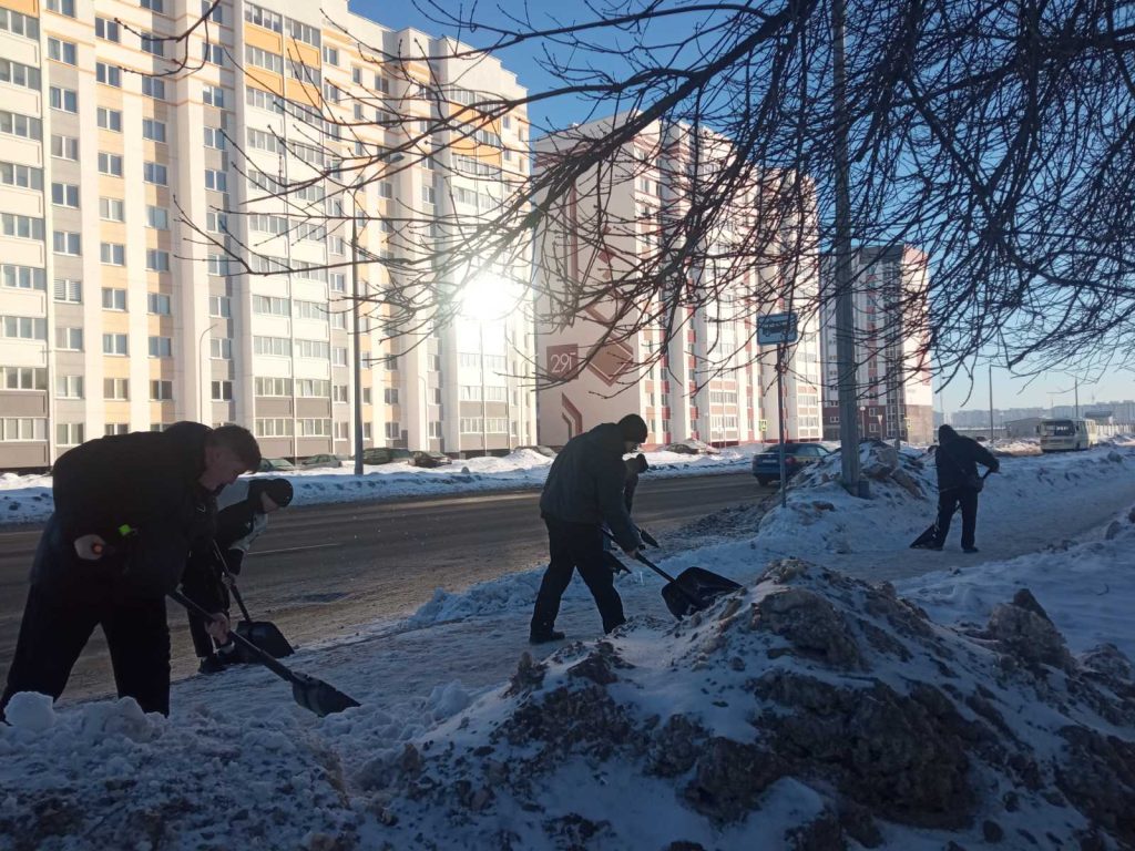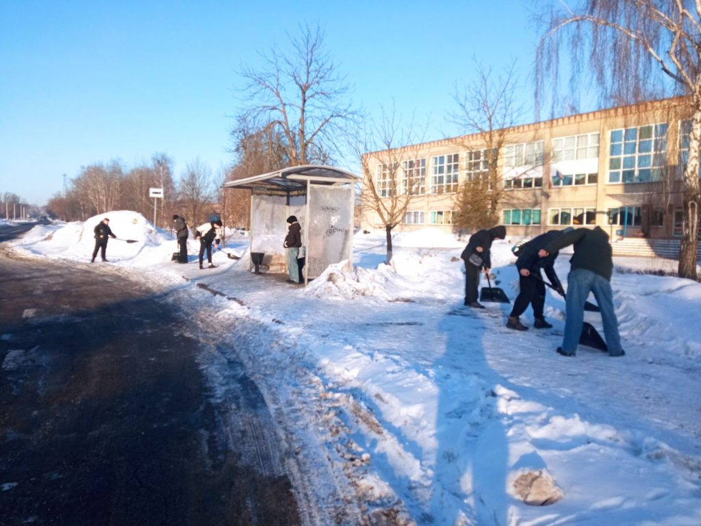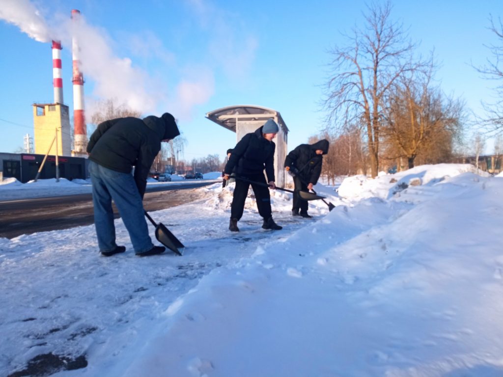 Силами учащихся были очищены от снега остановки и пешеходные переходы по улице Козлова и улице Ленинградской в районе колледжа.