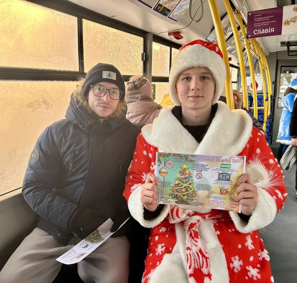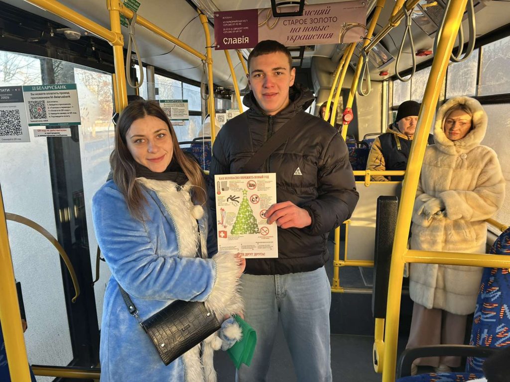 Учащиеся УО «Жлобинский государственный технологический колледж» совместно с секретарем первички Древило А.С. подарили новогоднее 🌟настроение жителям города, а так же в общественном транспорте 🚌 и на улице 🏙города раздали информационные памятки 📝«Как безопасно провести Новый год 🚨».