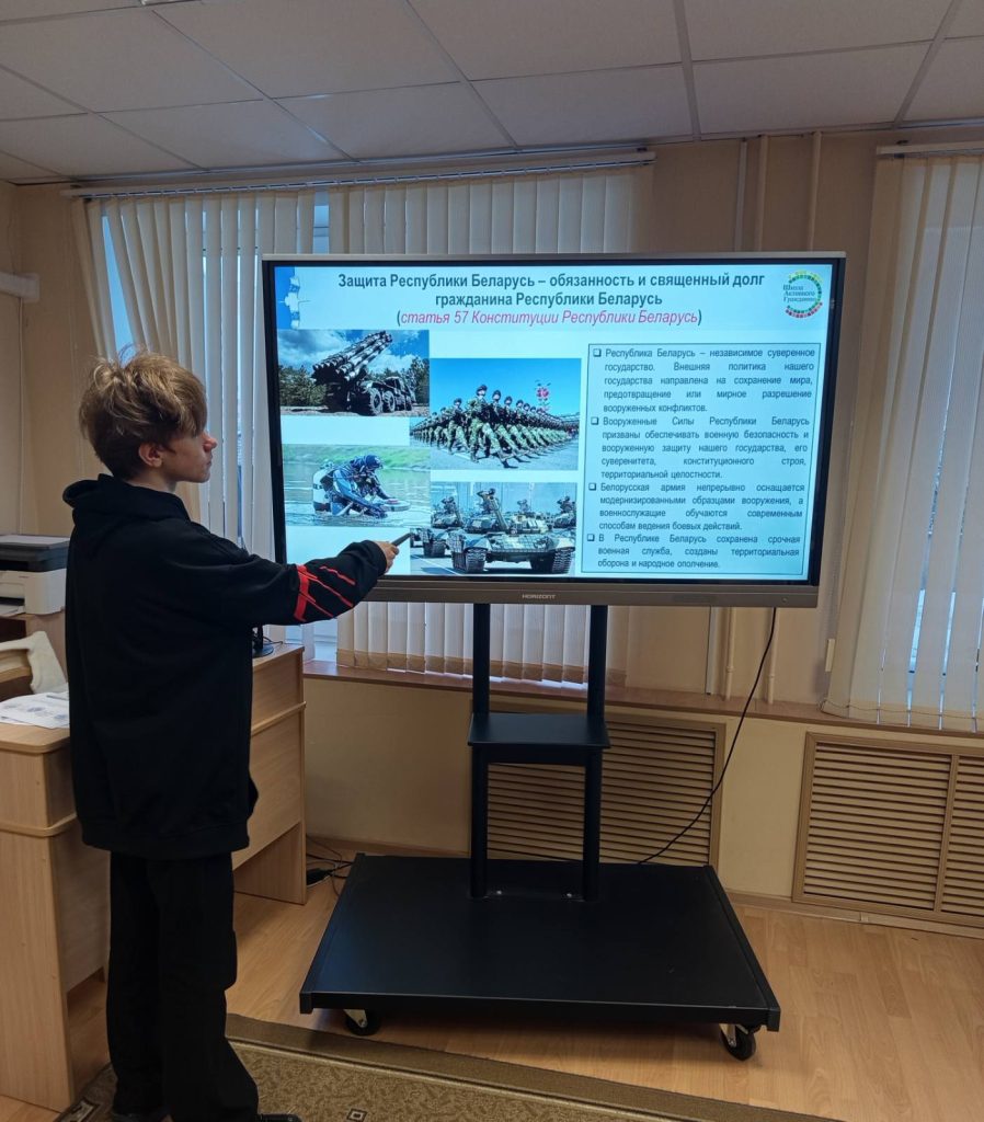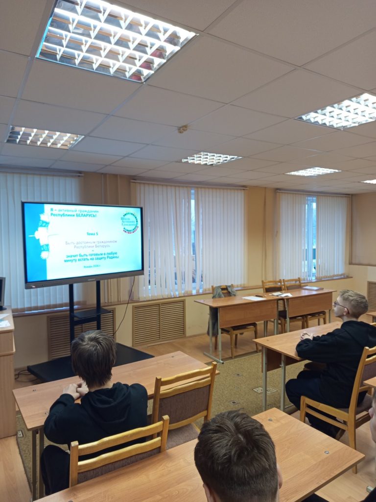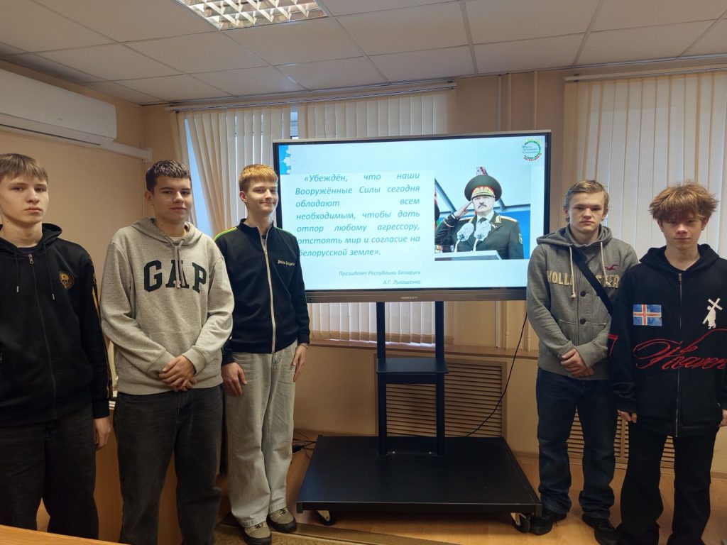 29 января 2026 года в учебных группах проведено мероприятие в рамках информационно-образовательного проекта «ШАГ» по теме «Быть достойным гражданином Республики Беларусь — значит быть готовым в любую минуту встать на защиту Родины». В ходе мероприятия были актуализированы знания учащихся о защите государственной границы Республики Беларусь, о Вооруженных силах Беларуси, о военной службе как школе мужества; об учебных заведениях, готовящих военных специалистов; о роли военно-патриотических клубов в патриотическом воспитании молодежи.