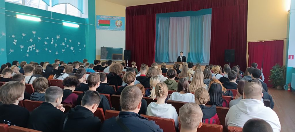Денис Игоревич рассказал об уголовной ответственности, предусмотренной статьей 328 УК Республики Беларусь за незаконный оборот наркотических средств, подтвердив примерами из судебной практики, а также рассказал, что грозит за надругательство над государственными символами и правонарушения экстремистской направленности. Судья привел примеры из реальных жизненных историй, уголовных и административных дел, по которым нарушители понесли установленные законом наказания, ответили на поступившие вопросы.