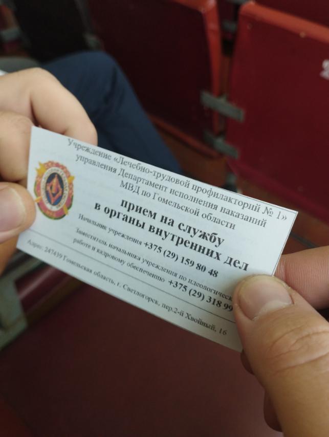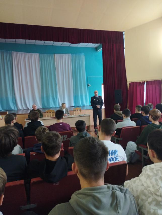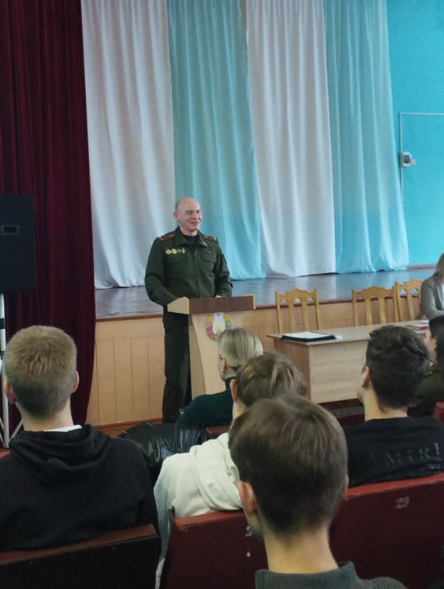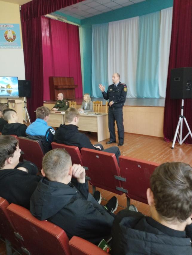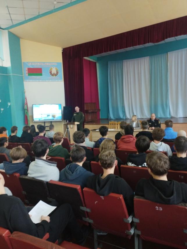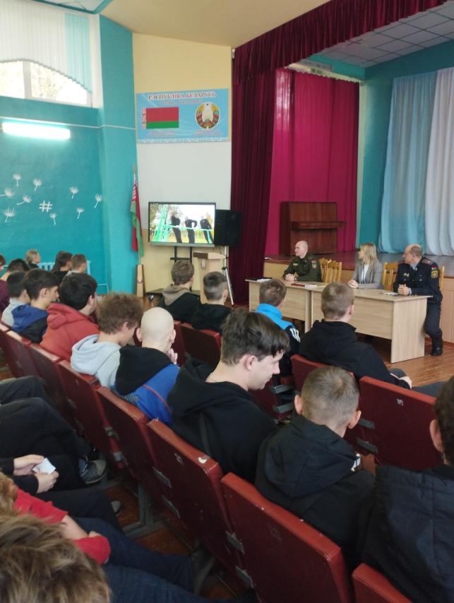 9 октября в УО «Жлобинский государственный технологический колледж» с учащимися выпускных групп была организована профориентационная встреча с начальником ОИРиКО ЛТП-1 города Светлогорска Бубневичем Ю.Ф. и старшим инспектором группы кадров Жлобинского РОВД, Савицким М.Ю. которые рассказали ребятам о тонкостях милицейских будней, престиже профессии, а также порядке отбора и приема на службу в органы внутренних дел.