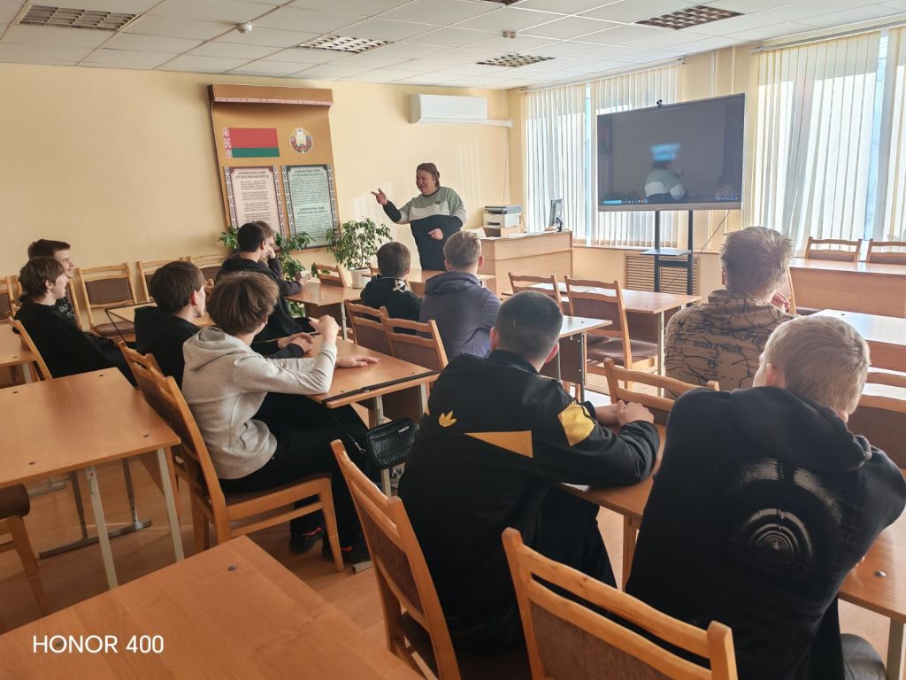 С целью ознакомления учащихся с уголовной ответственностью за незаконный оборот наркотических средств и последствиями употребления таких средств с учащимися УО «Жлобинский ГТК» была проведена нравственная беседа с игровыми элементами «Горькие плоды «Сладкой жизни». Ребята посмотрели фильм о последствиях распространения и употребления наркотиков. Игровой элемент «Коробочка» показал, как важно быть осторожным, когда тебе предлагают подержать в руках что-то незнакомое, а упражнение «Марионетка» помогло определить, что чувствует человек, когда им кто-то управляет и когда он не свободен.