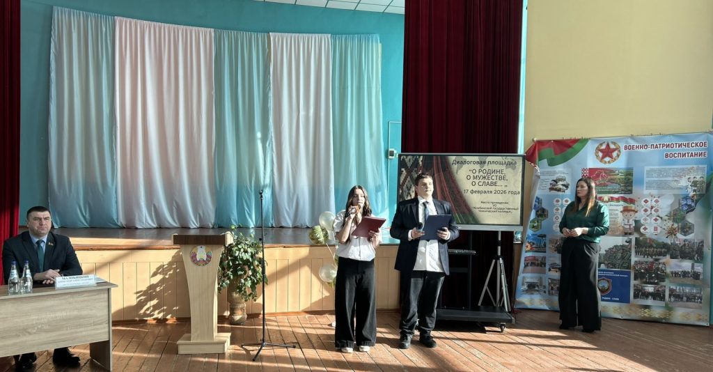 17 февраля 2026 года в рамках проекта «Будь успешен вместе с нами!», на базе учреждения образования «Жлобинский государственный технологический колледж», прошла диалоговая площадка «О РОДИНЕ, О МУЖЕСТВЕ, О СЛАВЕ» с участием следующих спикеров: Депутата Палаты представителей Национального собрания Республики Беларусь МАЛОБИЦКОГО А.А., заместителя прокурора Жлобинского района АНОШКО А.В., участкового инспектора ИДН ОВД Жлобинского райисполкома МИРОНОВОЙ В.С., старшего инспектора Жлобинского отдела департамента охраны