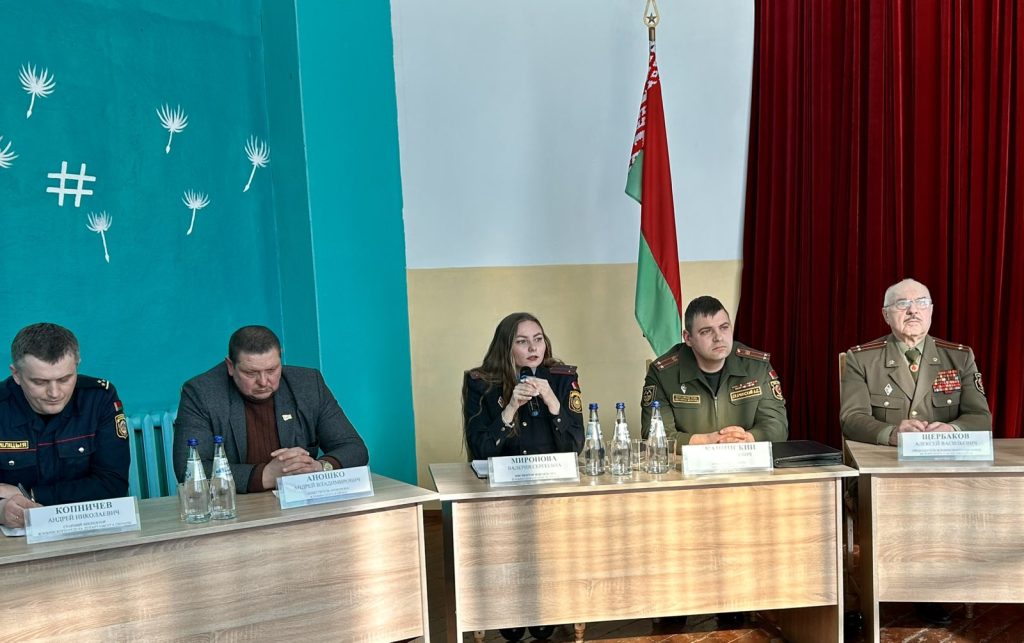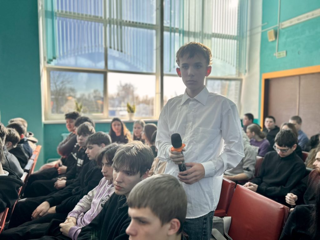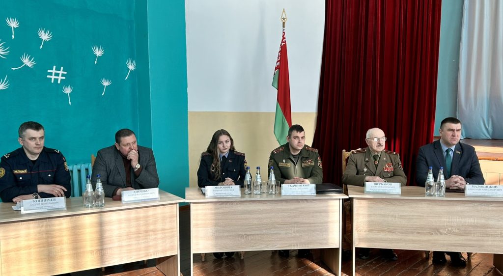 КОПНИЧЕВА А.Н., командира батальона воинской части 55461 СКАЧИНСКОГО А.С., председателя Жлобинского отделения белорусского союза офицеров ЩЕРБАКОВА А.В., в ходе которой участники получили множество интересных вопросов от учащейся молодежи.