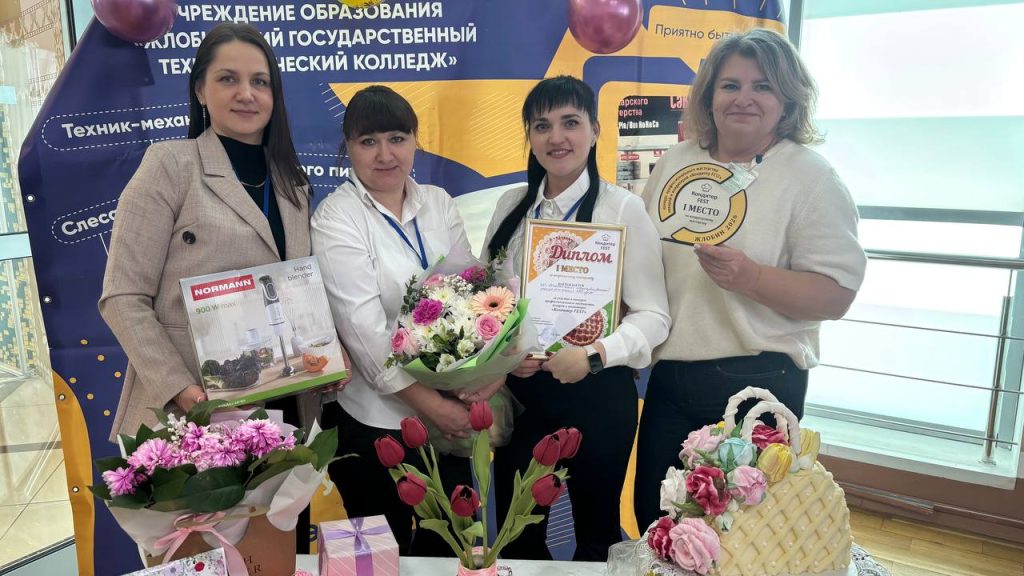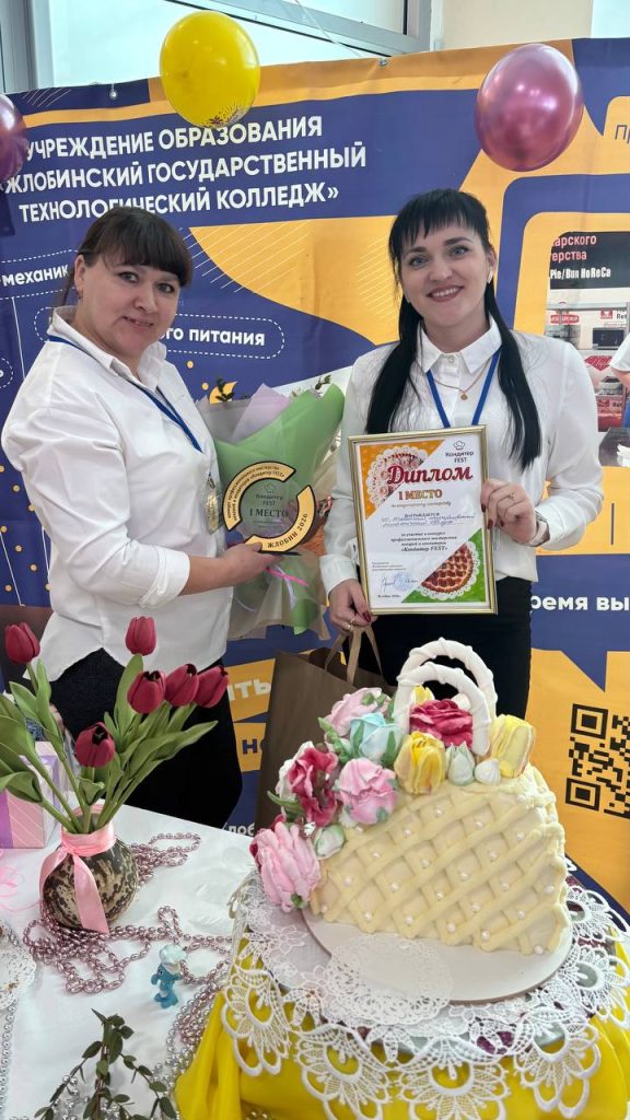 Дипломом 1 степени отмечена команда учреждения образования «Жлобинский государственный технологический колледж » за участие в конкурсе профессионального мастерства «Кондитер FEST»(в номинации «Лучший торт»), который проходил 1 марта во Дворце культуры металлургов с целью повышения профессионального мастерства и создания праздничного весеннего настроения всем жителям города. На суд компетентному жюри в красочном ассортименте на весеннюю тему были представлены кулинарные изделия (торт «Дамский каприз» и пирог «Весенний бриз»). Мастера производственного обучения Алейник Н.Г., Синицкая Е.В., Третьякова И.В. проявили мастерство не только в приготовлении сладких изделий, но и в оформлении своего стола.