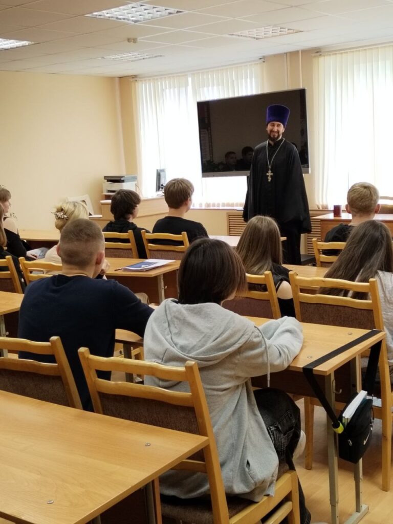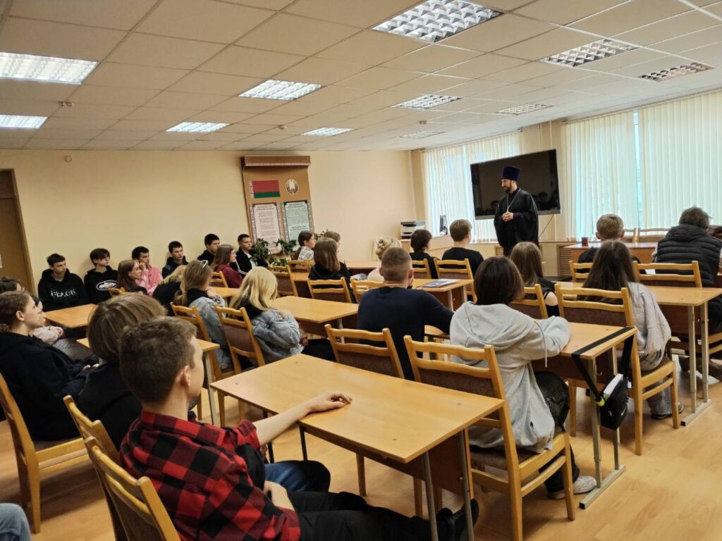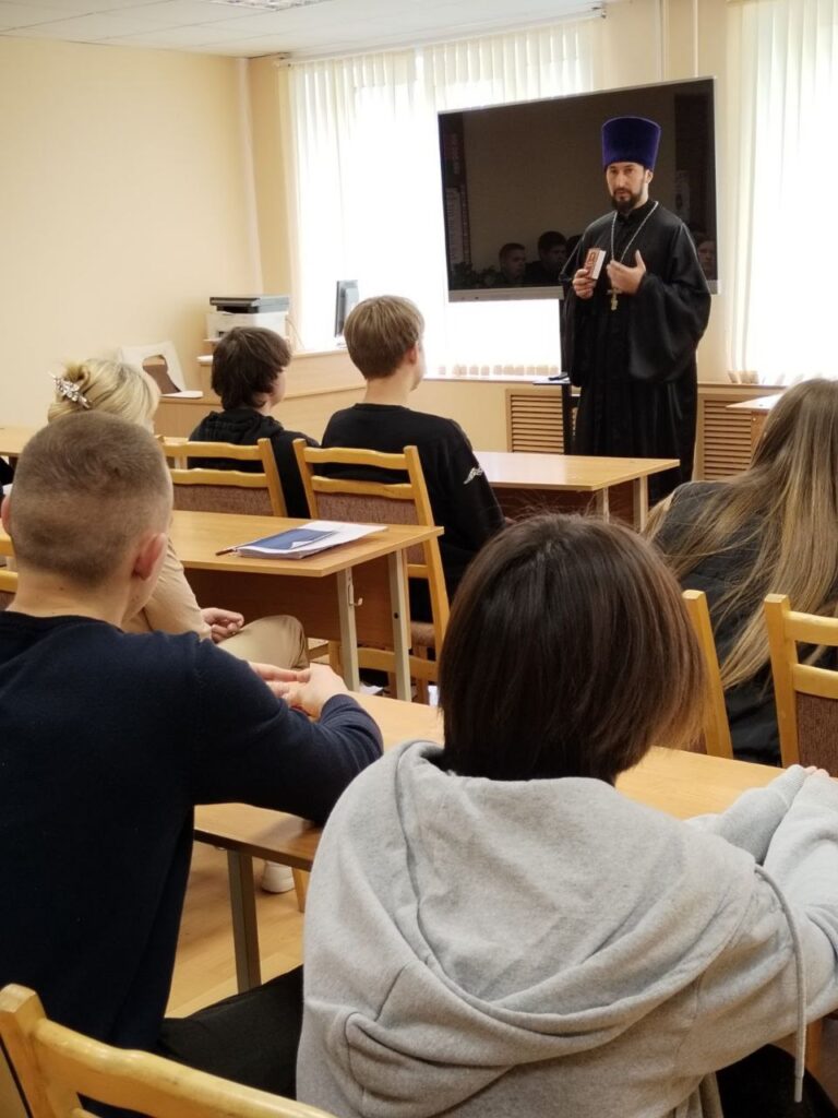 10 мая 2024 года в библиотеке колледжа состоялась духовно-нравственная беседа «Праздник праздников — Пасха. Добро и зло» для учащихся 2 курса с участием иерея Сергия Плетежова. Учащиеся узнали о традициях, обычаях и смысле праздника.