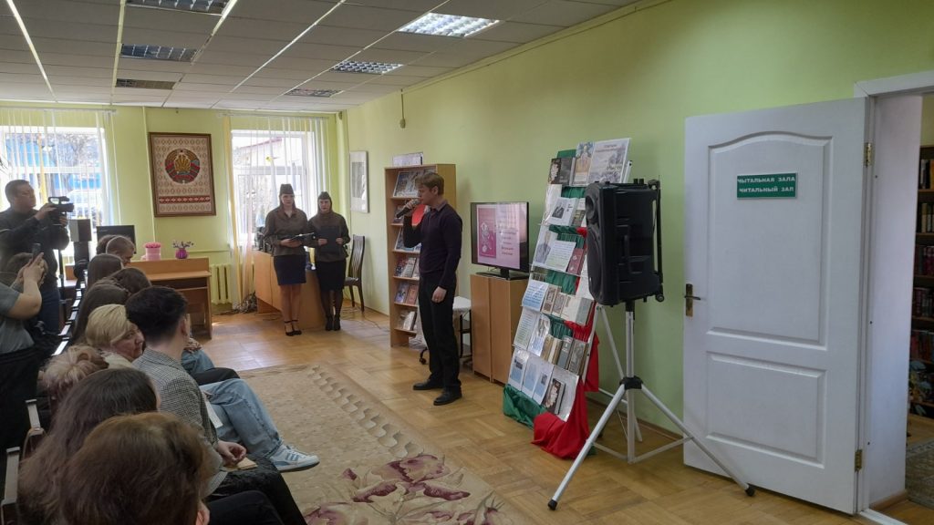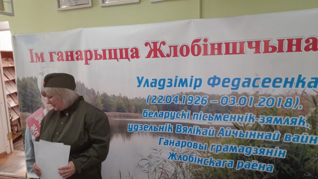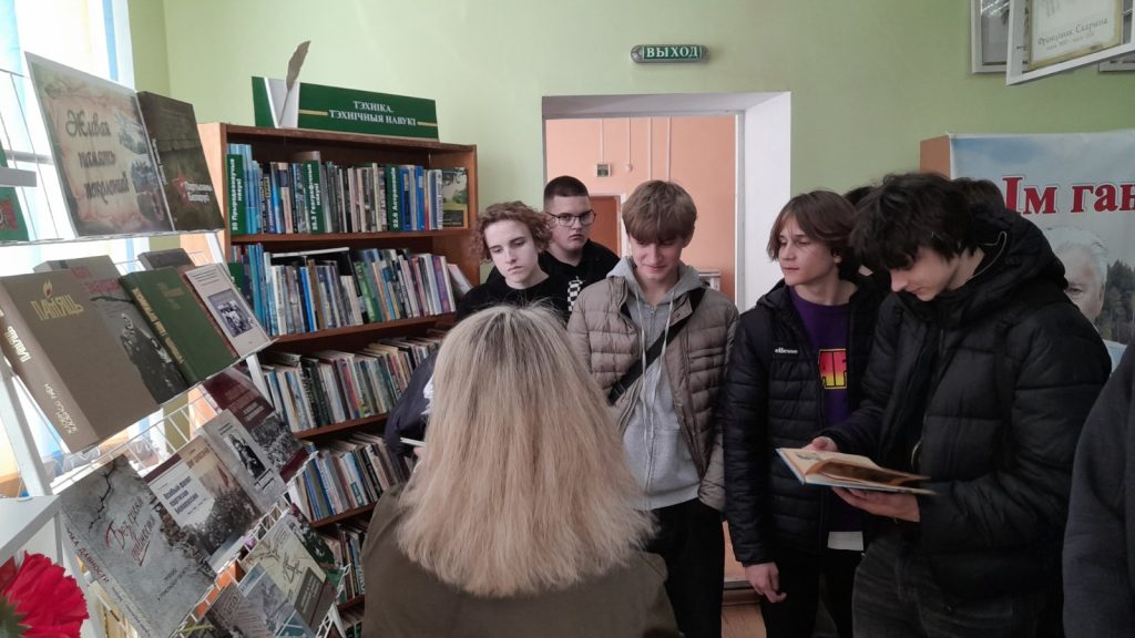Группа учащихся 1-го курса УО «Жлобинский ГТК» посетила ГУК «Жлобинская центральная районная библиотека им. Н. К. Крупской», где состоялся литературный вечер «В строках войны, в сердце народа», посвящённый 100-летию со дня рождения писателя, участника Великой Отечественной войны, почётного гражданина Жлобинского района В. К. Федосеенко.