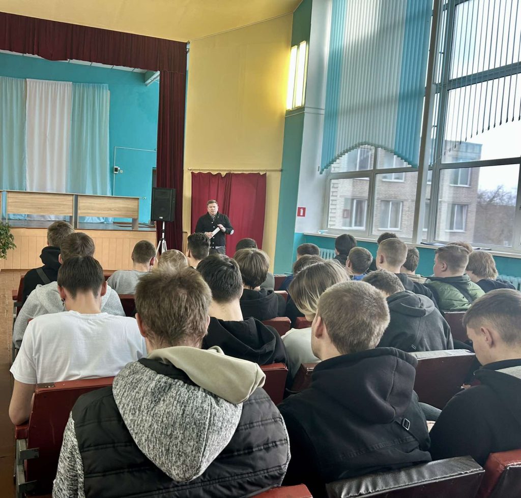20 марта 2026 года в УО «Жлобинский государственный технологический колледж» прошла профилактическая встреча учащихся с заместителем начальника ОВД Октябрьского райисполкома майора милиции Курганским С.В. на тему «Профилактика противоправного поведения. О популяризации службы в органах внутренних дел Республики Беларусь».