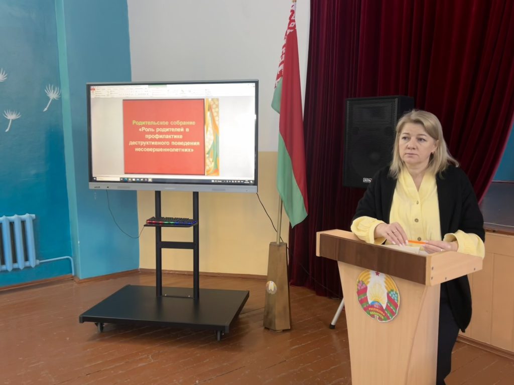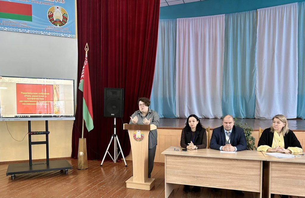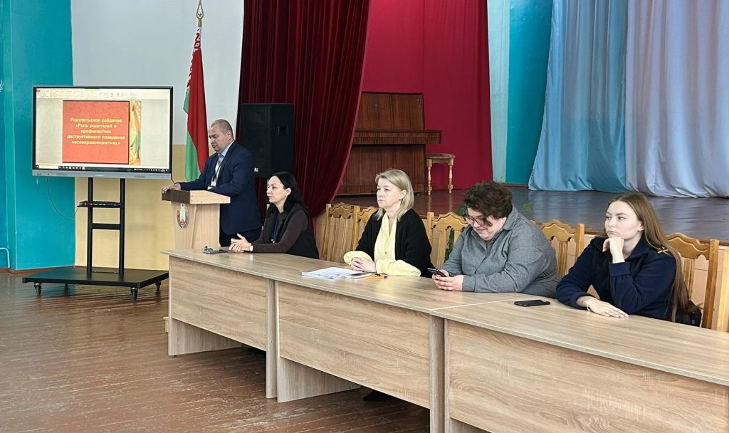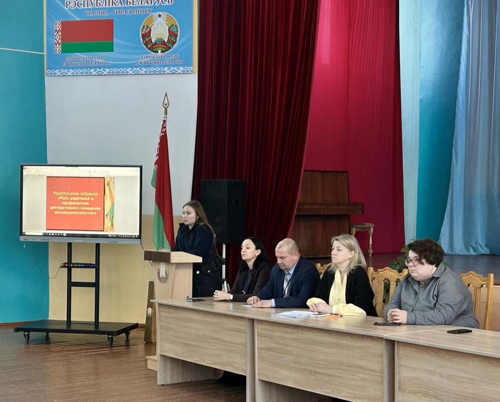 19 февраля 2026 года в учреждении образования «Жлобинский государственный технологический колледж» прошло общеколледжное родительское собрание на тему «Роль родителей в профилактике деструктивного поведения», на которым выступили заместитель директора по УВР Анискович Е.А., заместитель директора по УР Тит С.А., участковый инспектор ИДН Миронова В.С., подростковый врач-психиатр Наумова Д.В., педагог-психолог Клименок Т.Л. и педагог социальный Древило А.С.