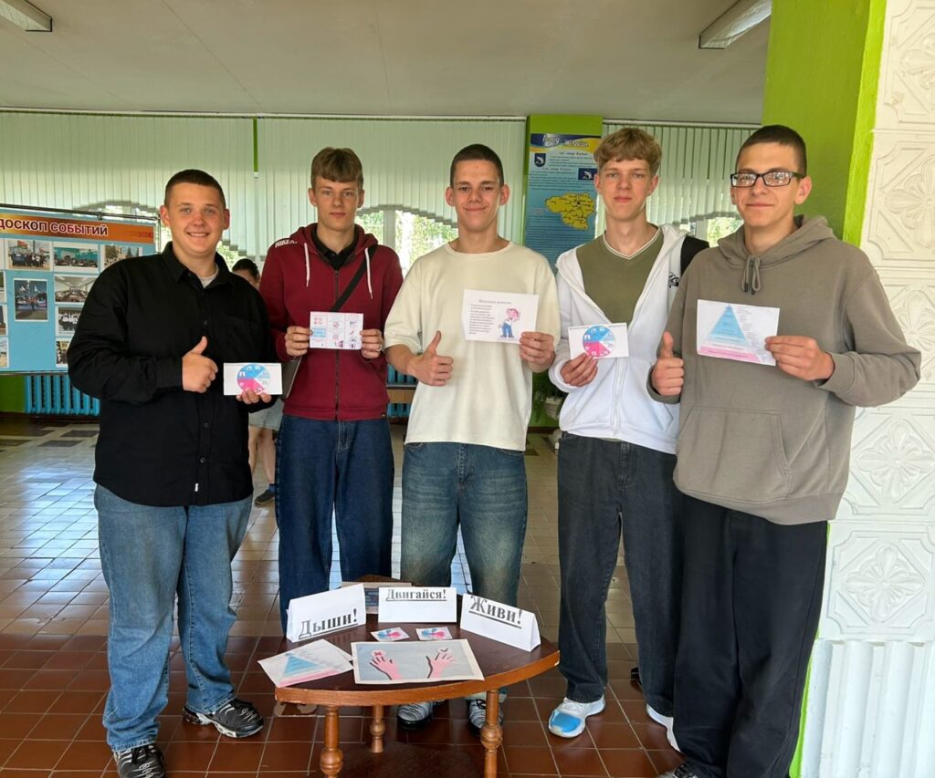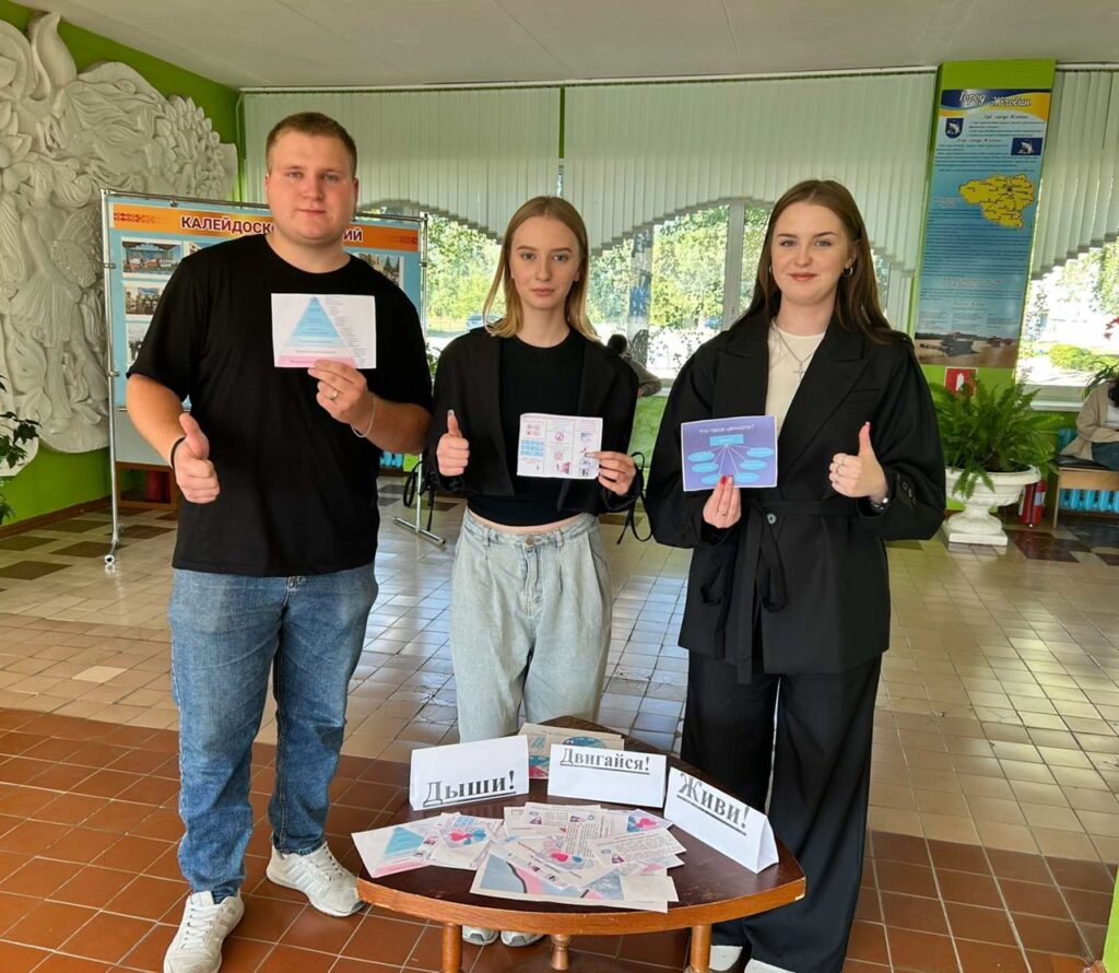 В рамках месячника по профилактике суицидального поведения учащихся «Скажи жизни «ДА!» 10 сентября волонтеры УО «Жлобинский государственный технологический колледж» провели на территории колледжа профилактическую акцию «Дыши! Двигайся! Живи!».