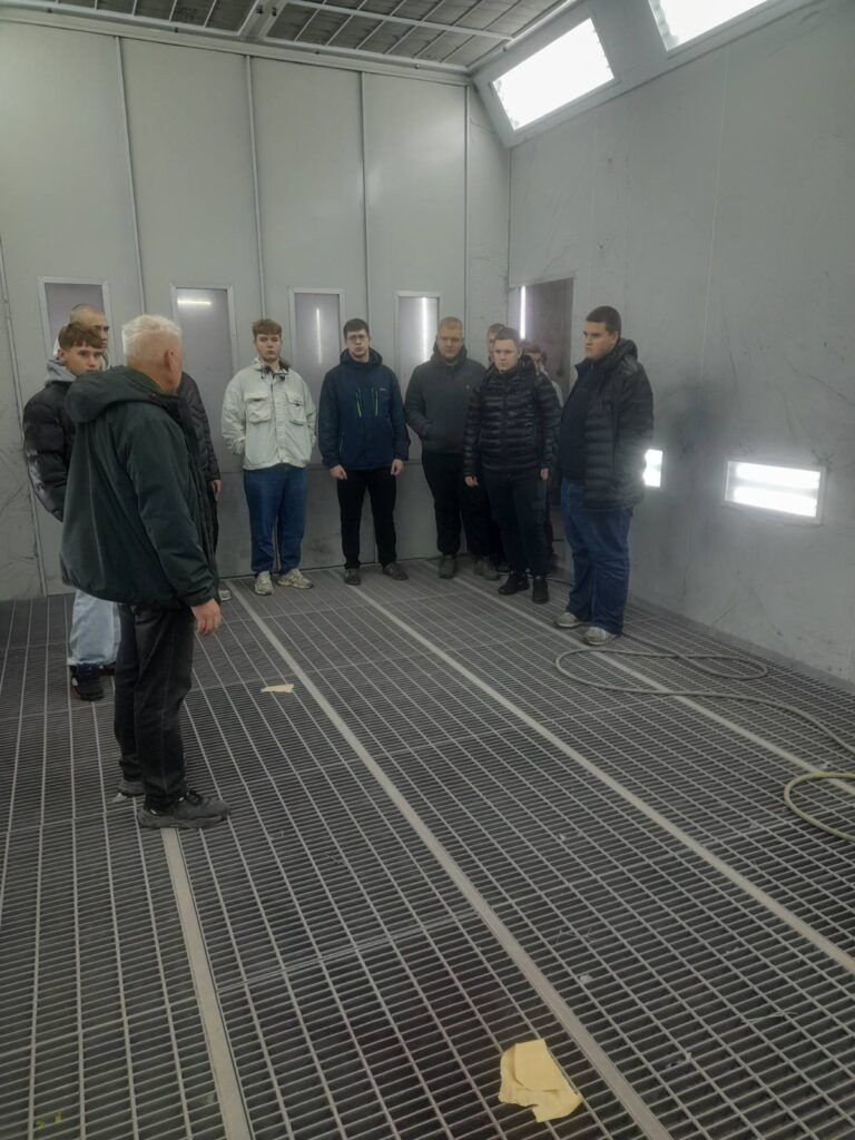 25 октября с целью профориентационной работы учащиеся второй ступени обучения совместно с кураторами посетили ЧТУП «Максимковы И Компания». Ребята ознакомились с процессом восстановления кузовов автомобилей в условиях СТО, внедрения передовых технологий ремонта. Директор СТО Максимков Сергей Семенович провел для ребят познавательную беседу и ответил на все вопросы по ремонту и обслуживанию техники.