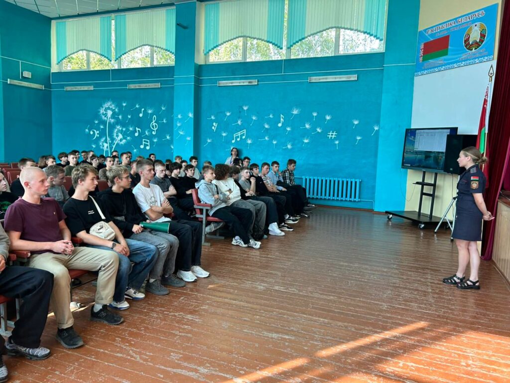 10 сентября в УО «Жлобинский государственный технологический колледж» состоялась встреча учащихся первого курса и подучетной категории с компетентным собеседником — участковым инспектором ИДН Жлобинского РОВД, на которой была освящена тема «Защита прав и законных интересов несовершеннолетних».
