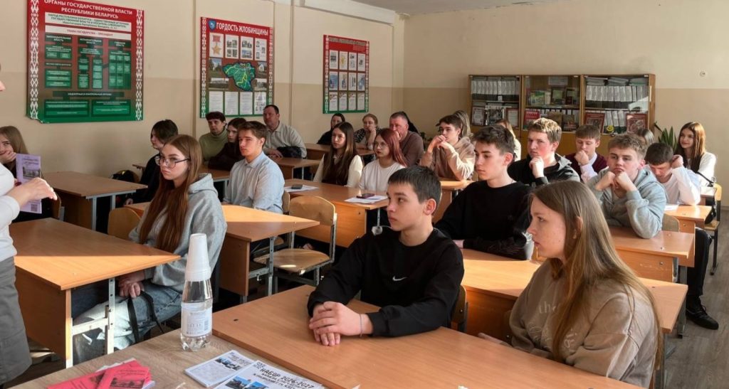 28 февраля 2026 года в ГУО «Средняя школа 11 г.Жлобина» состоялся Единый день профориентационной работы «Ярмарка профессий» для учащихся 9-11 классов. В мероприятии приняли участие преподаватель Савич Н.Г., учащиеся учебной группы 2ОП Нижникова А., Сочивко М., Степанов С. Учащиеся школ г.Жлобина и Жлобинского района познакомились с перечнем специальностей, которые можно получить в колледже. Будущие абитуриенты и их родители смогли получить полезную и интересную информацию о возможностях и условиях поступления в учреждение образования. В ходе беседы был продемонстрирован видеоролик о колледже, розданы буклеты и другие информационные материалы.